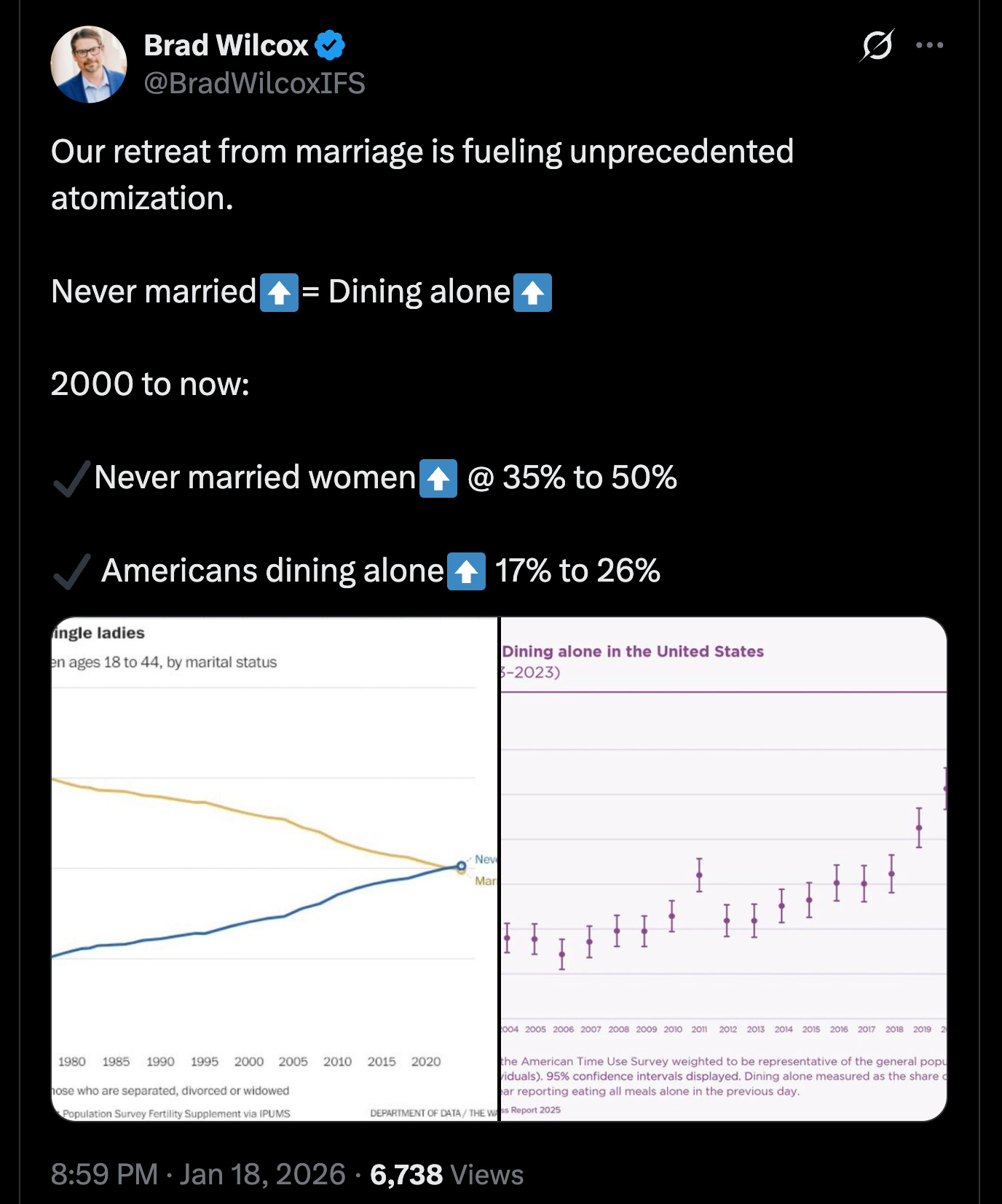 If you follow Brad Wilcox on X, and Rational Sheep readers need to do that, you know that the Institute for Family Studies leader is constantly sharing symbolic bytes of information such as this: